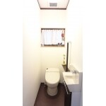 [テーマ] 明るく広々 、 デザイン重視 / メーカー:LIXIL(旧INAX他) / 商品名:サティスE / 種別:洋式:タンクレス / 温水洗浄便座:有り / 節水(6リットル以下):有り / 別置き手洗い器:有り / その他採用機器・設備:手洗い器