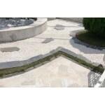雑草の処理が面倒なのと猫のフンにお困りのH様。 家屋との配色バランスを考えて欲しいとのご要望も頂きましたので白とグレーを基調にカントリーストーンと乱形石を配置してみました。