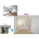 (パナソニック ホームエンジニアリング株式会社での事例です。) 和室をなくしてリビングを広くし、残りのスペースをウォークインクローゼットにし、洋室にもそれぞれ壁一面のクローゼットを造りました。ダイニングに光が届くようになったので、キッチンを移動させ、カウンターも設置。ダウンライトを配し、より一層明るくしました。キッチン移動により、空いたスペースをシューズクロークにし、玄関→リビングと、玄関→シューズクローク→キッチンの2WAY動線を実現しました。(工期:35日)