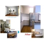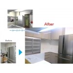(パナソニック ホームエンジニアリング株式会社での事例です。) お選び頂いたキッチンの塗装の扉を引き立たせるために、照明を昼白色から電球色に変えました。また、ダイニング側には、既存のテーブルの代わりに、軽食を食べるための人造大理石カウンターを設け、すっきりとした空間にしました。