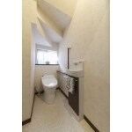 階段下に有る、1階のトイレは、洗面・脱衣室兼用で、廊下からの段差が30cmありました。
