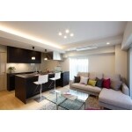 お客様のご希望である一流ホテルのスイートルームのようなインテリアを実現するために、デザイン性にこだわりながらも、機能性、使いやすさにも配慮してプランニングをしました。特にリビングに置いたピンク色のエッグチェアがアクセントとなっています。生活感があまり出ないよう、大型のクローゼットや、工夫された造作家具など、収納にもこだわりました。