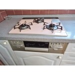 こちらのお客様は、お好きな『ピンク』色を、外壁とコンロ、脱衣所にメインカラーとして使用しました。外装に関しましては、屋根が暖色の洋瓦に、白いサッシでしたので、とても良く似合っています。ガスコンロや脱衣所も、窓際のレースのカーテンが可愛らしく映えるアクセントになりました。この他に、トイレ交換工事も行いました。