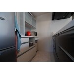 【1階】ご両親のキッチンです。コンパクトながら使い勝手の良いキッチンになりました。