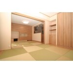 「床に座る生活を楽しみたい」というお客様のご要望から、リビングダイニングに畳を入れました。また収納が少なくお困りだったことから、玄関を入ってすぐのところに上着を収納できるスペース、リビングダイニングと洋室には壁面収納を新設しました。全体の統一感を大切にしたマンションリフォームです。