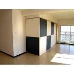 中古物件を購入されたお施主様。ご自身のライフスタイルに合うお住まいにする為、リフォームを行いました。 リビングは広く、しかし、来客等、必要に応じて仕切れるようにしておきたい、とのご要望から、リビングに隣接する和室の間仕切りを撤去し、戸襖にすることでいつでも仕切れるようにしました。 襖は紺青と白の貼り分けで市松模様風にして、空間のアクセントに。 キッチン、ダイニング、リビングと下がり壁があり、それぞれの空間がバラバラな印象があったため、撤去して、すっきりとした開放感と空間としてのまとまりを持たせました。 玄関からLDKへ続く廊下は、その半分を占めていた収納を撤去し、圧迫感を軽減。 洗面室への入口は、お施主様のご希望で、西部劇映画に出てくるバーの入口のような取手がなく、内外どちらからでも扉を押して入ることの出来る自由ドアに。 外からの光を遮ってしまう不要な壁を取り払う事で、明るく開放的な空間になり、大胆な市松模様の襖や西部劇映画風のドアなど、遊び心のある住まいになりました。