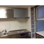 クリナップのSSという商品ですが、オールステンレスで お手入れも楽に出来るよなタイプです。もちろん見た目も素敵で キッチンにいる時間が増えそうですね。 柱の部分がデットスペースになってしまう為、可動タイプの収納棚をご提案させていただきました。