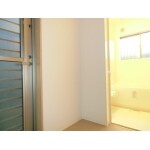 【after1】 通風ドアにより虫が侵入する心配もなく、風の往来を確保でき、湿気がこもりがちな洗面室の換気や空気循環もバッチリです。格子が入っているので防犯面でも安心ですね。