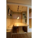 食品庫だった部分の壁と扉を撤去し、スペースに合わせてダイニングテーブルをオーダーで造りました。 座る部分(ベンチ)もオーダーで造り付けしました。 天板が開閉できて、ベンチ内部に使用頻度の低いカセットコンロや大きめのお鍋等を収納する場所としてご提案させて頂きました。