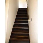 ゆがみがひどく発生していたので修正し、段板をかぶせるリフォームによく使われる工法を用いて再生させました。