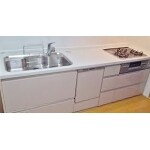 システムキッチンは使い勝手のいいスライド式の収納を ご提案させて頂きました。 段差が少なく、お手入れが楽チンです。