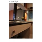 壁の汚れが激しく、壁側に据え付けられたキッチン。