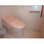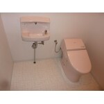 元々の事務所トイレの形状を利用して、広々ゆったりとしたトイレにしました。トイレ内の空きスペースを無駄にしないよう、手洗い器設置のご提案をさせて頂きました。