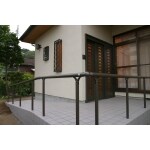 既存の建物の段差が大きかったので、勾配をなるべく緩やかにするために玄関入口の向きを90度変更し、距離をかせぎました。 脱輪防止に手すりも設置してあります。