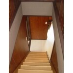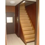 改装前に、しなりキシミを確認し後々キシミが出ない様に補強をして、階段材にカバーを行いました。 改装前の階段は暗かったので、明るくしましたが、床はほぼ白色でしたので、昇降にて黒くなる可能性が有りましたので、中間色としました。 階段ルーバー状のフェンス手摺も有りましたが撤去して、玄関ホールから放的な空間となりました。
