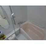 花をモチーフにした壁面にして、その花と同じカラーの浴槽に。鏡も楕円にすることでやわらかい雰囲気に。