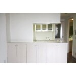 メーカー製品では対応不可だったキッチン前カウンター下部の収納扉は、テイストを合わせて造作しました。