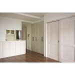 1)フローリングやドアは無垢調のものにしたい。 2)カラーは、床はウォールナット色、ドアはナチュラルで明るい色に。 3)キッチン前カウンターの下は扉を付けて収納にしたい。