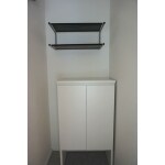 全てオープン棚の玄関収納にしたい!というご要望を受け、 隠せる収納とオープンの見せる収納の組み合わせにすることをご提案☆ローコストに抑えるため、IKEAにてシューズボックスとシューズラックをお施主様ご自身で調達されました☆