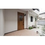 暗く雑然としていた玄関周りを玄関の位置を敷地奥側に移動しても、白い外壁と新しくした玄関ドア、そこにつながるスロープも整備して明るく心楽しいアプローチになりました。