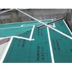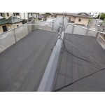 屋根を直す前は緑色のカラーベスト屋根でした。茶色の部分は屋根が高くなっている鋼板製の棟です。
