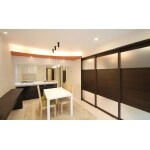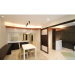 既存では2部屋だった空間を可動間仕切りによりフレキシブルに仕切ることが出来るLDKに一新した。間接照明を備えた下がり天井を設置することで、LDKと書斎、そして畳スペースという空間に繋がりをもたせている。
