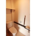 排水位置の関係からトイレは標準品を選びましたが、別途手洗い器を新設して、利用しやすいようにしました。ここでも手すりやカウンターは建具の色と合わせています。