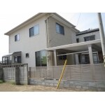 ご新築の外構工事及びフェンス、カーポート、テラス囲い取付工事をご依頼いただきました。 お引渡しが冬場でしたので、土留めブロック、整地、砕石敷きの工事(1月) → カーポート組立(2月)→ 階段タイル、土間コンクリート工事(3月末)暖かくなってから施工させていただきました。テラス囲いも追加工事いただき、オプションの『ほせるん棚』をご採用、小物(洗濯ばさみ、ハンガーなど)の仮置き台として、使わないときは折たたんで収納できるので便利です。エクステリアはシャイングレーでカラーを統一し、明るい印象の外観になりました。