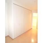 洋室の約4mの壁面に約2.5m幅のクローゼットを造作させて頂きました。中棚とパイプも全面に取付ましたので洋服がほぼ収納できました!扉材は奥様が色味を悩まれていらっしゃいましたが、壁面の一部としてなじみやすいホワイトウッドです。天井近くまでの扉ですが、圧迫感は感じません♪