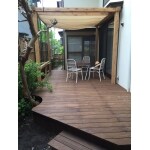 建物に合うウッドデッキの築造と日除けを設置できるパーゴラが欲しいとのご要望を頂きました。