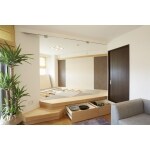 リビング隣にある洋室部分を解体してLDKと一続きの空間にし、角度をつけてゾーニングした和室スペースを設けることでLDKを広く感じさせるよう提案。和室スペースは小上がりにし、床下部分を収納スペースとして活用できるように造作しました。