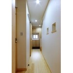 床は明るいパインの無垢フローリング、壁は調湿効果のある珪藻土を塗っています。玄関から入った瞬間、木の香りに癒されます。