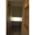 見せる収納ができる洋室をご提案させていただきました。限られたスペースでなおしたいものが多くありましたので、作業室として、描いたり、作業したりができるように棚をたくさんつけさせていただきました。 また家具を埋め込んで、本をたくさん収納できるようにさせていただいています。
