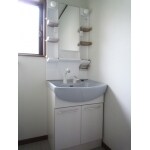 限られたスペースにも収まるコンパクトタイプの洗面化粧台をご提案しました。