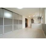 洋室と隣り合わせのリビングは、採光式の可動式間仕切を設けることでシーンに合わせて使い分けられるようにご提案しました。 間仕切りを空けると広く開放的なリビングとして使っていただくことができます。