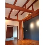 息子さんご夫婦がお母様のご自宅で同居されることになり、全体的なリフォームのご相談をいただきました。 とても立派な梁がありましたので、開放的な空間になるよう、勾配天井であえて梁を見せるプランをご提案させていただきました。 また、壁紙は面によって貼り分け、スポットライトを使用し、おしゃれな空間に生まれ変わりました。