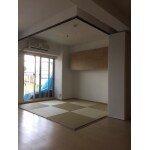 元々は押入れ付の6帖の和室でしたが、リビングの一部の和室空間となるように、畳はヘリがなくフローリングとも相性の良い琉球畳を採用し、可動間仕切で必要な時だけ独立した空間になるよう設計しました。また、壁面に造り付けの収納を設置しました。