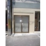 シャッター前に両開きサッシの取り付け、外部は現状同等吹付け 内部の床はタイルカーペット(サンゲツ)貼り施工