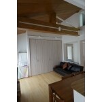 子供部屋は扉をなくし、ロフトからはいつでもリビングをのぞく事ができますので、お子様たちの遊び声が常にキッチンに立つお母さんおBGMになる事間違いなしだと思います。床は無垢床を採用しておりますが、コストダウンを図るために梁材や天井材にはラワンベニヤを利用しています。狭くても吹き抜け効果で広々と感じるリビングになりました。
