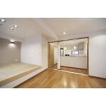 リビングとキッチンの間は壁を設けず、開閉がしやすい引戸ドアで区切りました。 ドアをオープンにすれば開放的なLDKとして、ドアで仕切ればリビングとキッチンをそれぞれの空間としてお使いいただけます。 圧迫感が出ないように、ドアは採光の取れるデザインを採用しました。