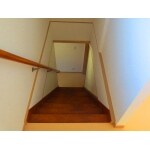 階段の側面の木目パネルを明るい色に変えるだけで、かなり明るい空間になると思われます。