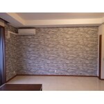 各部屋1面だけですが壁紙を替え、以前とは雰囲気がガラリと変わりました。キッチンの腰壁はレンガ調の壁紙にし、カフェのような雰囲気に。ペットにかじられた箇所もすっかり綺麗に直りました。【サンゲツRESERVE1000 7440】