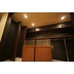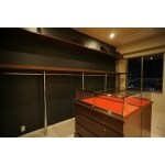 主寝室に隣接した洋室をウォークインクローゼットとして収納システムを造り付けしました。 また、黒の壁クロスを貼り、ガラスケースのコレクションやお洋服が見映え良くなるようにしました。