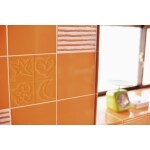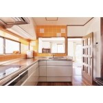 I型だったキッチンを使い勝手のいいL字型のレイアウトに変更し、オレンジのデザインタイル壁で明るく楽しい雰囲気に。オレンジと白のコントラストが美しい。壁を抜いたことで、ダイニングにいるご主人と会話しながら料理ができるようになりました。配膳にも便利になり、開放感が生まれました。キッチンのサイズは拡張され、充実の収納力で鍋なども全て綺麗に片付きました。床も張り替えて、リビングとの一体感を重視しました。 タイルはキッチンと同じくLIXILのものをセレクト。木目とも調和するオレンジで、所々でアクセントを加える遊びのあるデザインになりました。
