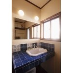 こだわりを貫いた、深いブルーのイタリアンタイルを使用した、オーダーメイドの化粧台です。