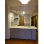 配管の都合上配置変更できなかったため、マンションのLDに向いたセミクローズドキッチンをオープンなL型対面のキッチンに変更しました。