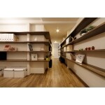 玄関・廊下 壁に集成材のカウンターを埋め込み、収納としても、ディスプレイスペースとしても、フリーに活用できます。