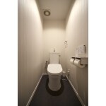 フチなし便器で、溜まりやすいフチの汚れも楽に掃除ができます。 また便器の表面がツルツルで汚れがつきにくく、お手入れが楽になります。 落ち着いたお色のトーンで合わせた、シックなトイレ空間になりました。