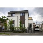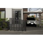 角地に建てられている施主様のプライバシーへの配慮として玄関前やウッドデッキの目隠しとして高さのあるフェンスを設置しました。使用されたフェンスはウッドデッキで用いられた素材と同じもので、既存の塀とのカラーバランスを損なうことのないものを使用しました。
