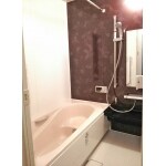 機能性・清掃性が高い最新のシステムバスにリフォーム。アクセントパネルには上品なボルドーの柄物をお選びいただきました。換気乾燥暖房機も付き、雨の日のお洗濯時にも大活躍です。